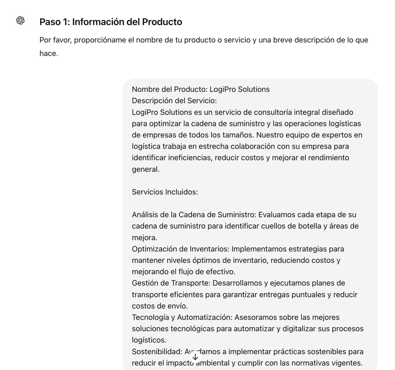 Mientras más específico seas al describir tu producto, servicio, y tus objetivos, más detalladas y precisas serán las ideas que te proporcionaré.