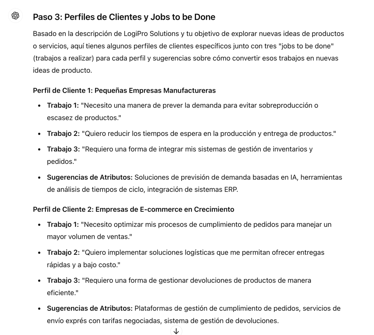 ChatGPT puede ser tu aliado para generar ideas de JTBD rápidamente.