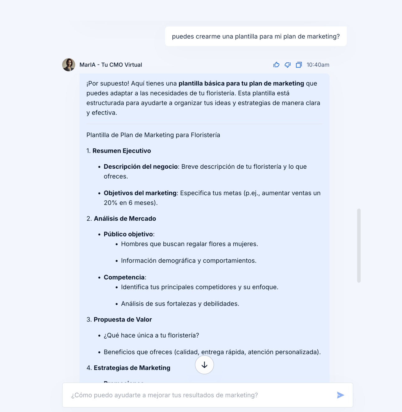 María es como tener una experta en marketing en tu bolsillo, lista para ayudarte en cualquier momento.